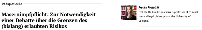 "...die Grenzen dessen, was bislang als erlaubtes Verhalten eingestuft wurde, [werden] zunehmend zugunsten erweiterter staatlicher Schutzpflichten verschoben" - Frauke Rostalski klug zum BVerfG-Urteil zur Masernimpfpflicht