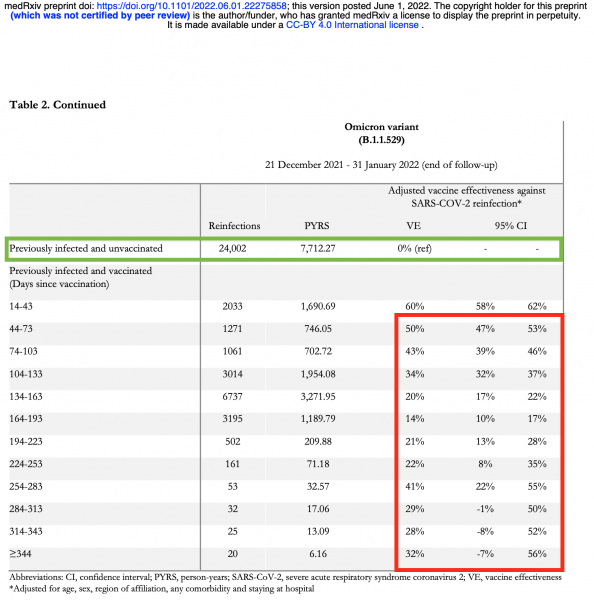 DK: unter Omikron nur geringer Nutzen der "hybriden Immunität" gegen Reinfektion - (6 Wochen nach Impfung ≤ 50% relative Impfstoff-Effektivität)