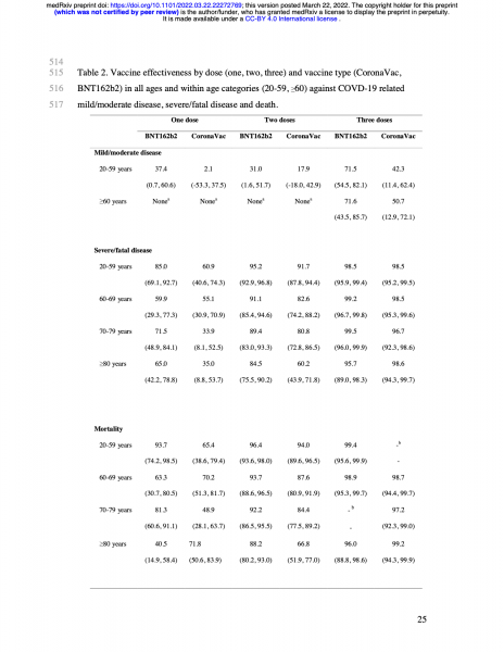 Both BNT and Sinovac vaccines provide good protection against severe Omicron BA.2; but elderly who received 2xSinovac need a 3rd dose of vaccine