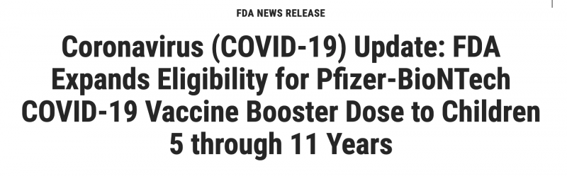 Coronavirus (COVID-19) Update: FDA Expands Eligibility for Pfizer-BioNTech COVID-19 Vaccine Booster Dose to Children 5 through 11 Years | FDA