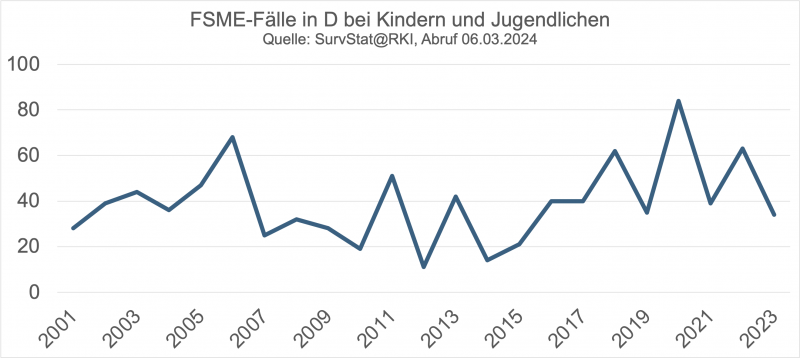 Und auch die ebenfalls gebetsmühlenartig wiederholte Mär von den in den letzten Jahren ja so dramatisch ansteigenden FSME-Fallzahlen in Deutschland stimmt zumindest für Kinder und Jugendliche definitiv nicht: