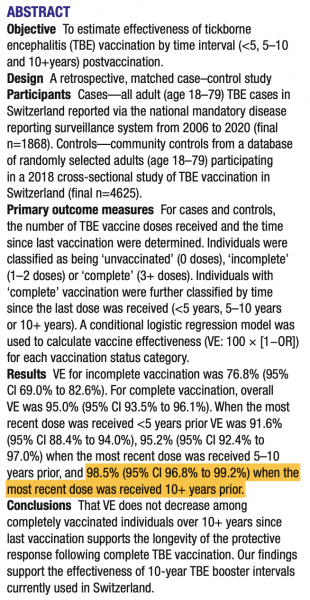 FSME-Impfung: auch nach > 10 Jahren noch > 95% Wirksamkeit