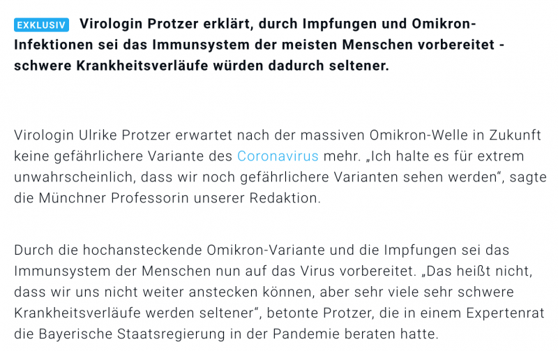 Virologin Protzer erklärt, durch Impfungen und Omikron-Infektionen sei das Immunsystem der meisten Menschen vorbereitet - schwere Krankheitsverläufe würden...