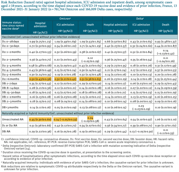 Eurosurveillance | Vaccine-induced and naturally-acquired protection against Omicron and Delta symptomatic infection and severe COVID-19 outcomes, France, December 2021 to January 2022