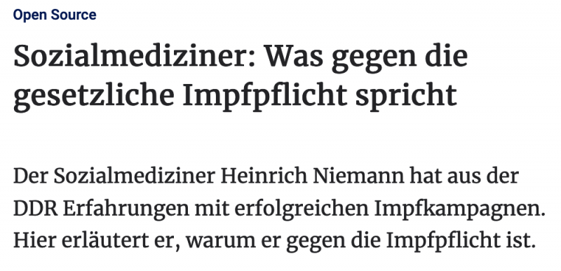 Der Sozialmediziner Heinrich Niemann hat aus der DDR Erfahrungen mit erfolgreichen Impfkampagnen. Hier erläutert er, warum er gegen die Impfpflicht ist.