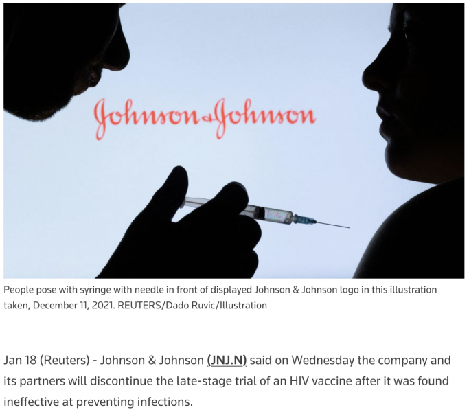 Johnson & Johnson said on Wednesday the company and its partners will discontinue the late-stage trial of an HIV vaccine after it was found ineffective at preventing infections.