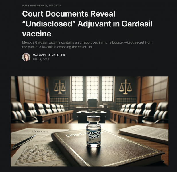 Wie @MaryanneDemasi in einem mehr als lesenswerten substack aufzeigt, wird im Laufe einen Gerichtsverfahrens gegen den Gardasil™--Hersteller Merck gerade deutlich, dass