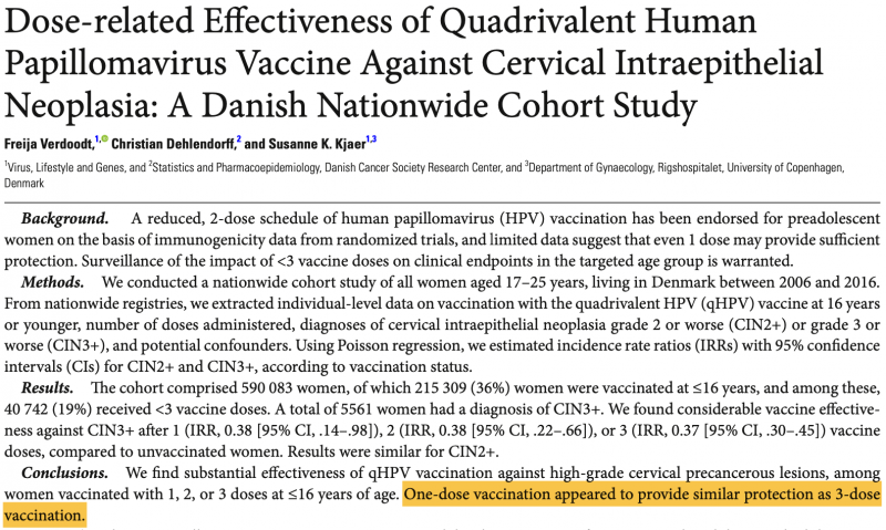 Dose-related Effectiveness of Quadrivalent Human Papillomavirus Vaccine Against Cervical Intraepithelial Neoplasia: A Danish Nationwide Cohort Study | Clinical Infectious Diseases | Oxford Academic
