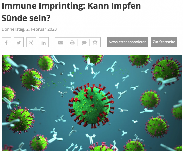 Das Deutsche Ärzteblatt veröffentlicht anlässlich zweier neuen Studien einen lesenswerten Übersichtsartikel zur Frage des immune imprinting aka original antigenic sin bei Covid19-Impstoffen (https://www.aerzteblatt.de/nachrichten/140205/Immune-Imprinting-Kann-Impfen-Suende-sein).