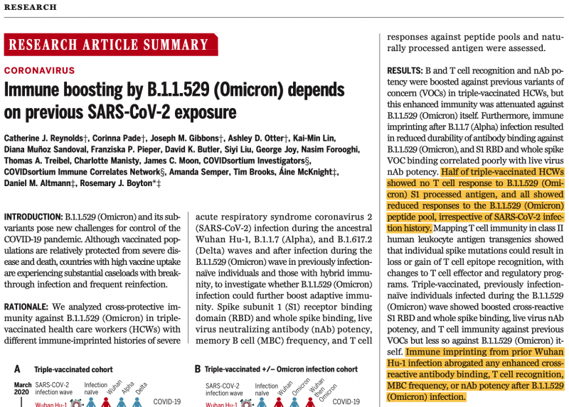 "Immune imprinting"/"Original antigenic sin" nach Covid-Impfung auch bei zellulärer Immunität?