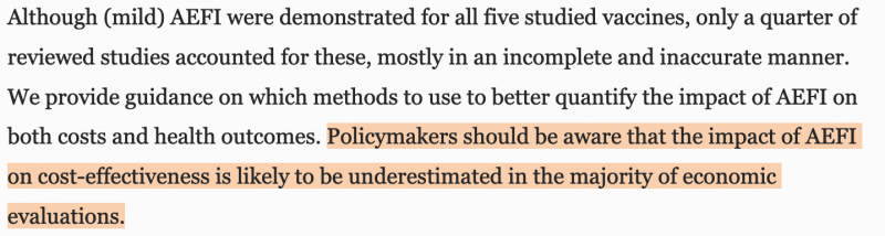 "Policymakers should be aware that the impact of AEFI on cost-effectiveness is likely to be underestimated in the majority of economic evaluations."