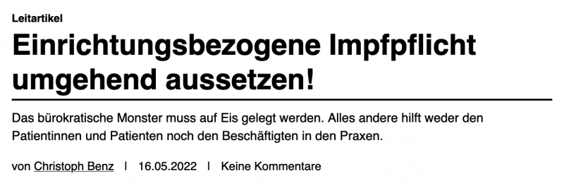 Einrichtungsbezogene Impfpflicht umgehend aussetzen!: zm-online