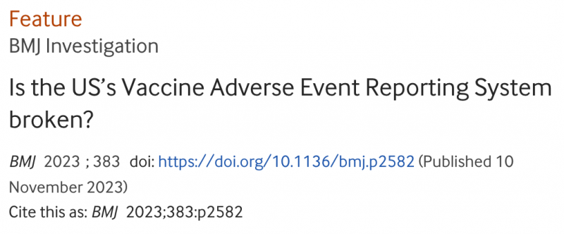 Passend zur internationalen #MedSafetyWeek, also der u.a. auch vom Paul Ehrlich-Institut groß angekündigten Aktionswoche zur Steigerung der Arzneimittelsicherheit, veröffentlicht das British Medical Journal in einen Investigativ-Artikel, dass die international größte Datenbank für gemeldete Impfstoff-Nebenwirkungen - das US-amerikanische Vaccine Adverse Effects Reporting System VAERS - weit hinter seinen öffentlich verkündeten Ansprüchen zurückbleibt.