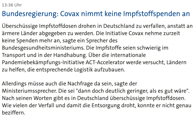 Impfstoff-Überschuss: niemand will die deutschen Impfdosen - nicht mal geschenkt...