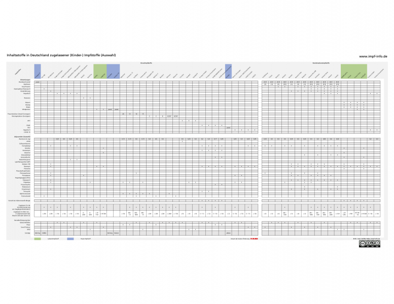 Zum 01.03.2023 habe ich die Übersicht über die Inhaltsstoffe der (v.a. Kinder-) Impfstoffe in Deutschland aktualisiert. Sie ist hier als PDF bzw. PNG herunterzuladen.