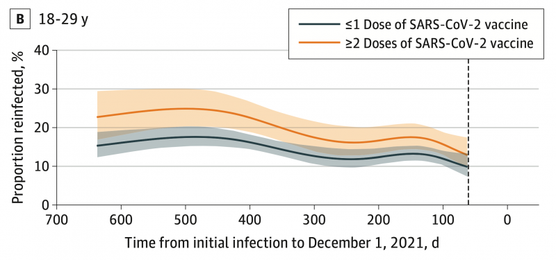 - Zwei oder mehr Impfdosen erhöhten das Risiko einer Reinfektion im Studienzeitraum.