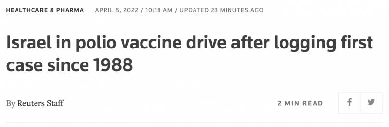 Israel in polio vaccine drive after logging first case since 1988 | Reuters
