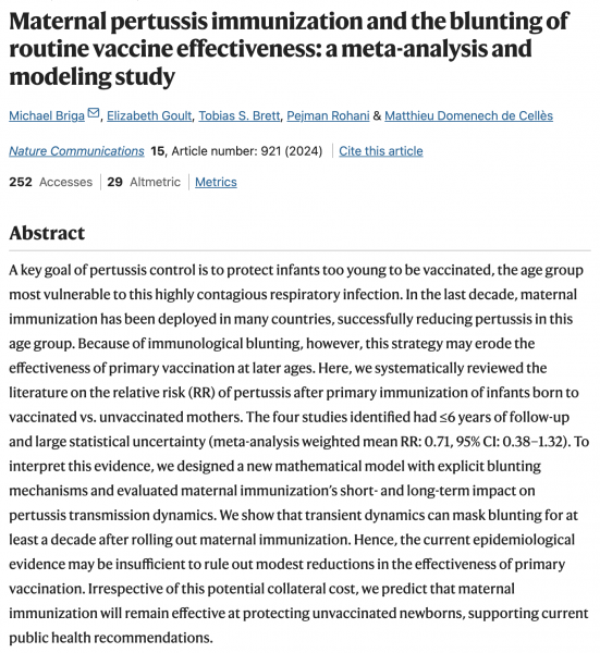 Maternal pertussis immunization and the blunting of routine vaccine effectiveness: a meta-analysis and modeling study | Nature Communications