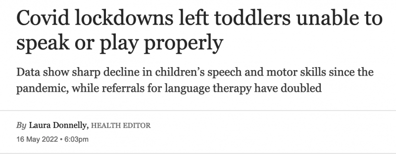 Kinder und Covid: auch in UK massive Entwicklungsrückstände bei Kleinkindern durch Coronoia