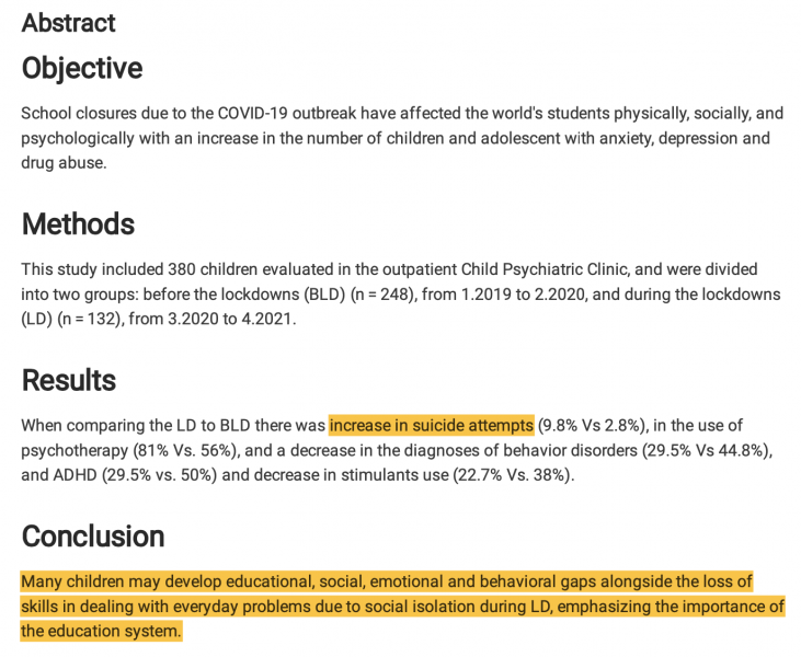 Kinder und COVID - die Auswirkungen des Lockdown - israelische Studie
