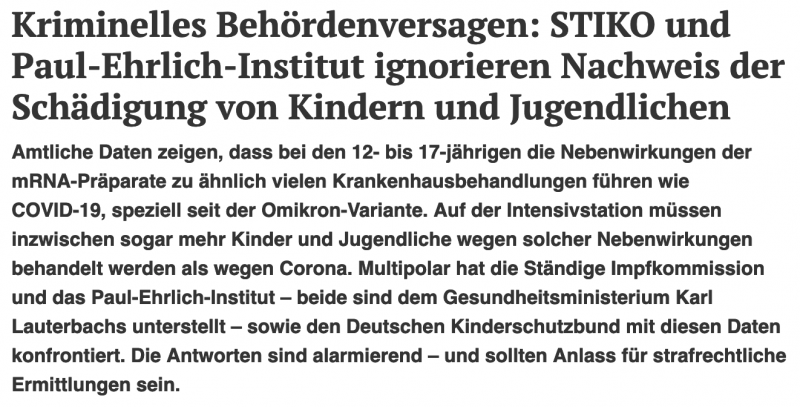 Kriminelles Behördenversagen: STIKO und Paul-Ehrlich-Institut ignorieren Nachweis der Schädigung von Kindern und Jugendlichen -