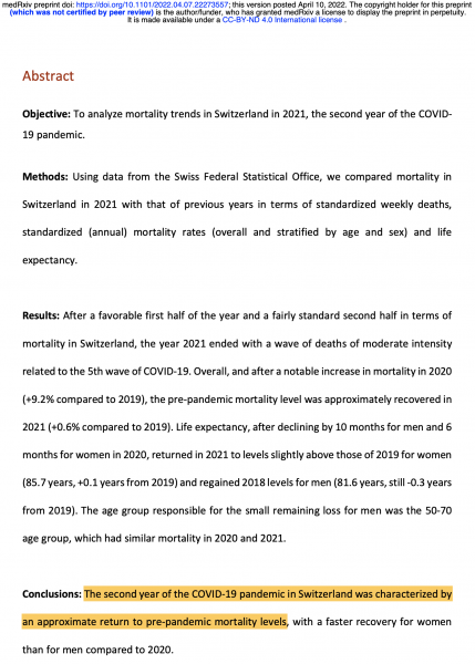 Kluge Pandemiepolitik funktioniert: in der Schweiz 2021 praktisch keine Übersterblichkeit