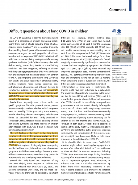 LongCovid bei Kindern: dänische Studie von Kikkenborg Berg - kluger Kommentar