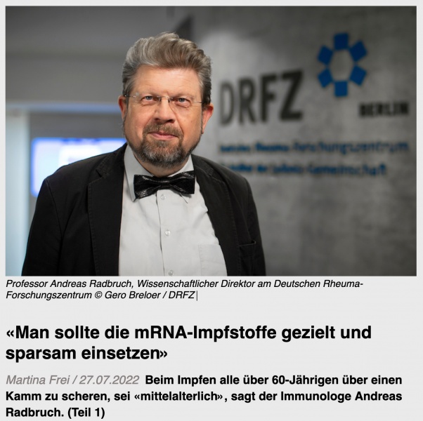 "Man sollte die mRNA-Impfstoffe gezielt und sparsam einsetzen" - Andreas Radbruch zur Covid-Impfung
