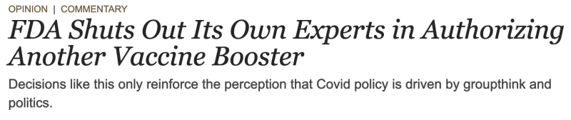FDA Shuts Out Its Own Experts in Authorizing Another Vaccine Booster - WSJ