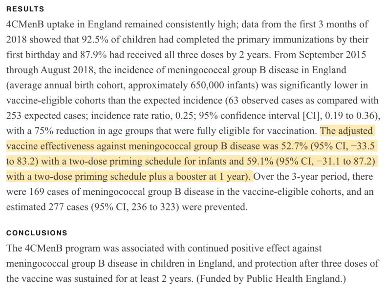 Die Formulierung in den Conclusions ist genial gewählt: "Das Impfprogramm ist mit einem anhaltenden positiven Effekt gegen Men B-Erkrankungen bei Kindern in England assoziiert...".