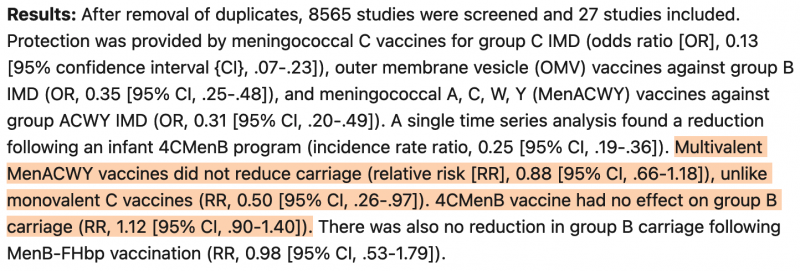 Meningokokken-Impfstoffe: weder MenB- noch MenACWY-Impfstoffe verringern die Besiedlung mit den jeweiligen Meningokokken, daher ist keine Herdenimmunität zu erwarten