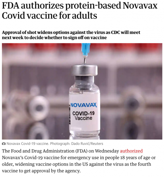 FDA authorizes protein-based Novavax Covid vaccine for adults | Omicron variant | The Guardian