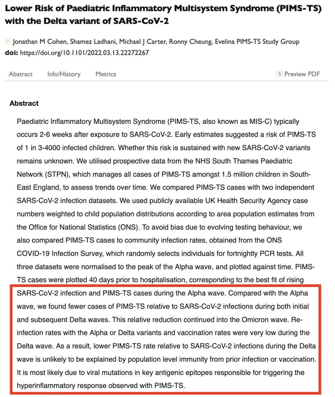 Lower Risk of Paediatric Inflammatory Multisystem Syndrome (PIMS-TS) with the Delta variant of SARS-CoV-2 | medRxiv