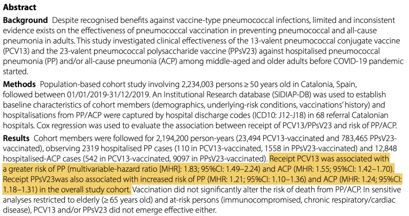 Das Ergebnis war mehr als ernüchternd: sowohl das Risiko für Pneumokokken-Pneumonien, als auch das für Pneumonien jedweder Ursache war für Geimpfte signifikant erhöht, teilweise fast verdoppelt.