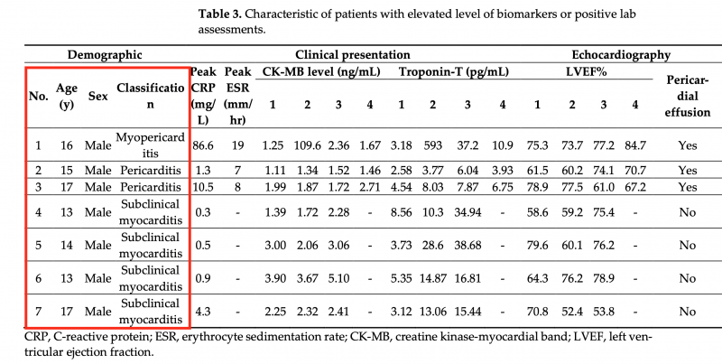 - 5 Fälle von Myokarditis, davon 4 ohne typische klinische Symptomatik