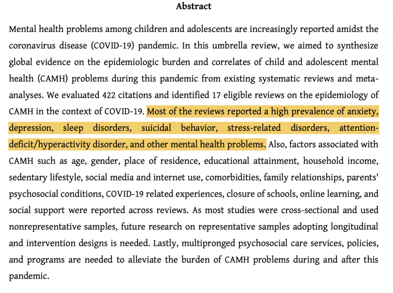Psychische Erkrankungen von Kindern und Jugendlichen während der Coronoia - eine erschreckende Übersichtsarbeit