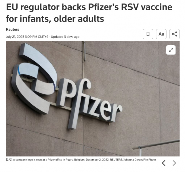 EU regulator backs Pfizer's RSV vaccine for infants, older adults | Reuters