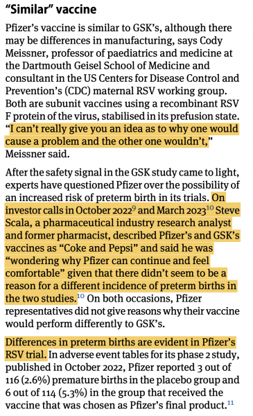Im renommierten British Medical Journal mahnen jetzt namhafte Wissenschaftler zu gründlicheren Untersuchung dieses Risikos auch beim Pfizer-Impfstoff (bei dem es in den Studien tendentiell, aber nicht signifikant auch auftrat) - die Impfstoffe seien so ähnlich, dass man auch beim Pfizer-Impfstoff mit einem vergleichbaren Risiko rechnen müsse.
