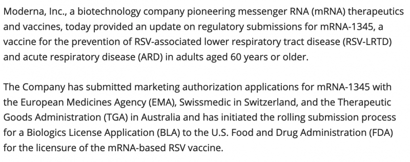 RSV - Moderna beantragt Zulassung für mRNA-Impfstoff auch bei der EMA - ohne jede wissenschaftliche Veröffentlichung bis jetzt...