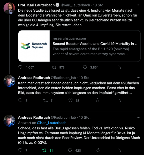 Kann man drastisch finden oder auch nicht, verglichen mit dem >20fachen Interschied, den die ersten beiden Impfungen machen. Passt eher in das Bild, dass das Immunsystem sich langsam an den Impfstoff gewöhnt …