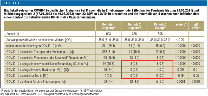 - Unter Omikron wurden 388 ungeimpfte und 506 Geimpfte Frauen erfasst.