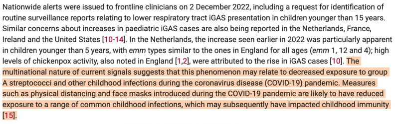 Mehrere Veröffentlichungen führen dieses Phänomen unmittelbar auf die Maßnahmen der Coronoia und die dadurch verringerten Erregerkontakte zurück - vergleichbar mit dem vermehrten Auftreten von z. B. RSV-Infektionen.