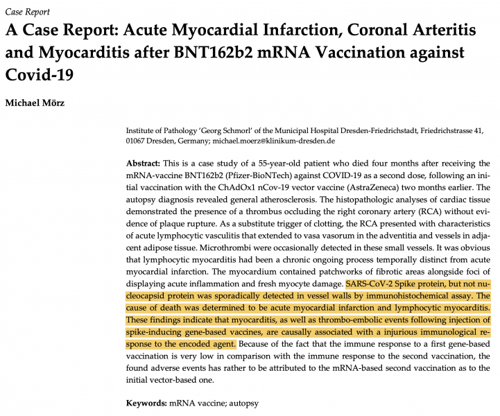 Tödliche Myokarditis nach mRNA-Impfstoff - Spike-Protein des Impfstoffs in Gefäßwänden nachweisbar - ein weiterer anekdotischer Einzelfall