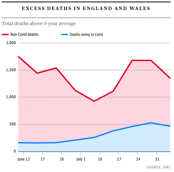 Der britische Telegraph zitiert offizielle Daten der UK-Gesundheitsbehörden, die darauf hinweisen, dass die "Kollateralschäden" der Covid-Maßnahmen (Rückgang von Arztbesuchen, Vorsorgeuntersuchungen, ...) insgesamt mehr Todesfälle gefordert haben könnten, als SARS-CoV-2 selbst.