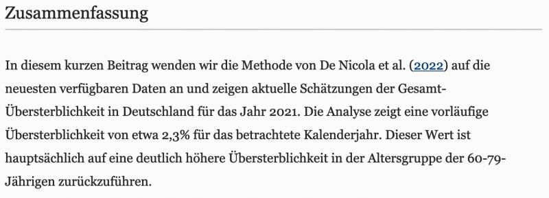 Übersterblichkeit 2021: lt. CODAG der LMU 2,3%, im Wesentlichen in der Gruppe der 60- bis 79-Jährigen