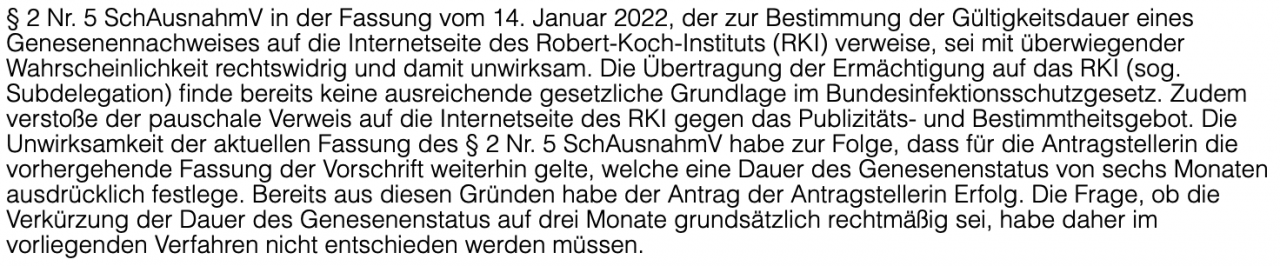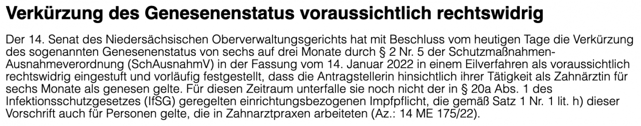 "Verkürzung des Genesenenstatus mit überwiegender Wahrscheinlichkeit rechtswidrig" - OVG Niedersachsen