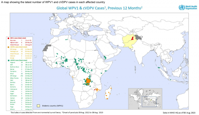 Hier der Vergleich für die letzten 12 Monate (Daten der WHO - rot die WPV, grün und gelb...):