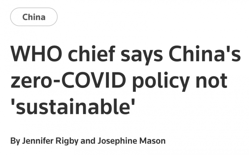WHO chief says China's zero-COVID policy not 'sustainable' | Reuters