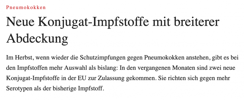Mit Vaxneuvance™ und Apexxnar™ hat die EMA zwei neue Pneumokokken-Impfstoffe für Erwachsene zugelassen, obwohl für keinen der beiden Daten zur klinischen Wirksamkeit - also dem Verhindern von Erkrankungen - vorliegen.