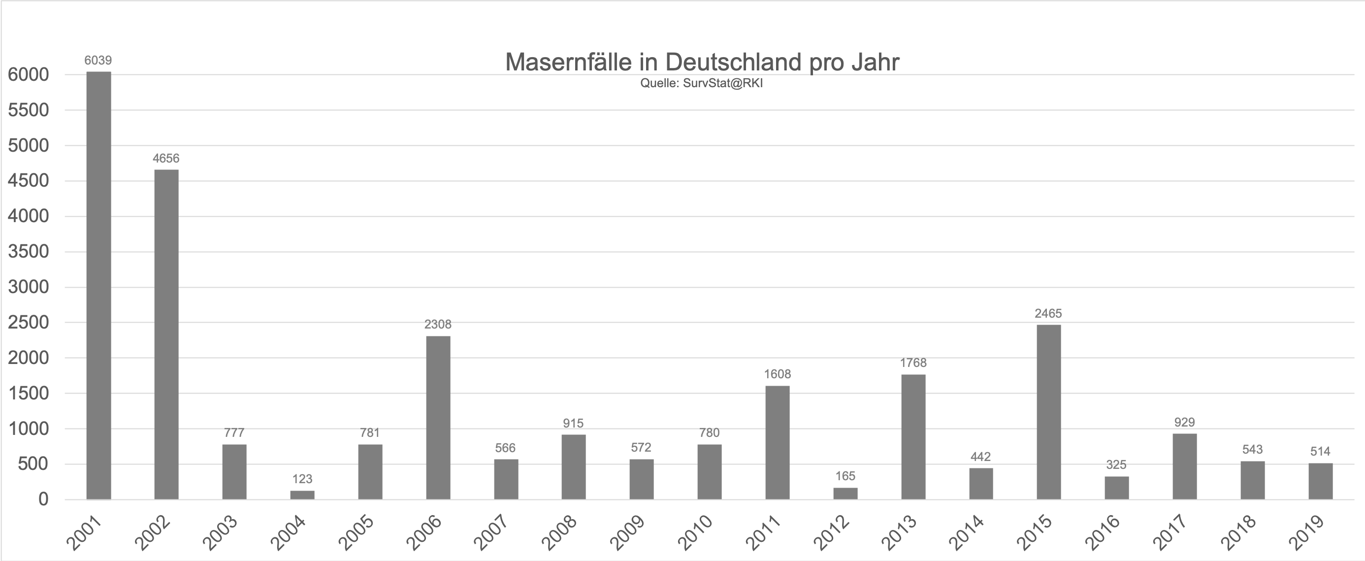 Dies suggeriert einen Anstieg der Masernfallzahlen auch in Deutschland, den es definitiv nicht gibt – weder in der kurz- noch in der mittelfristigen Betrachtung (Graphiken nach Rabe 2019a):